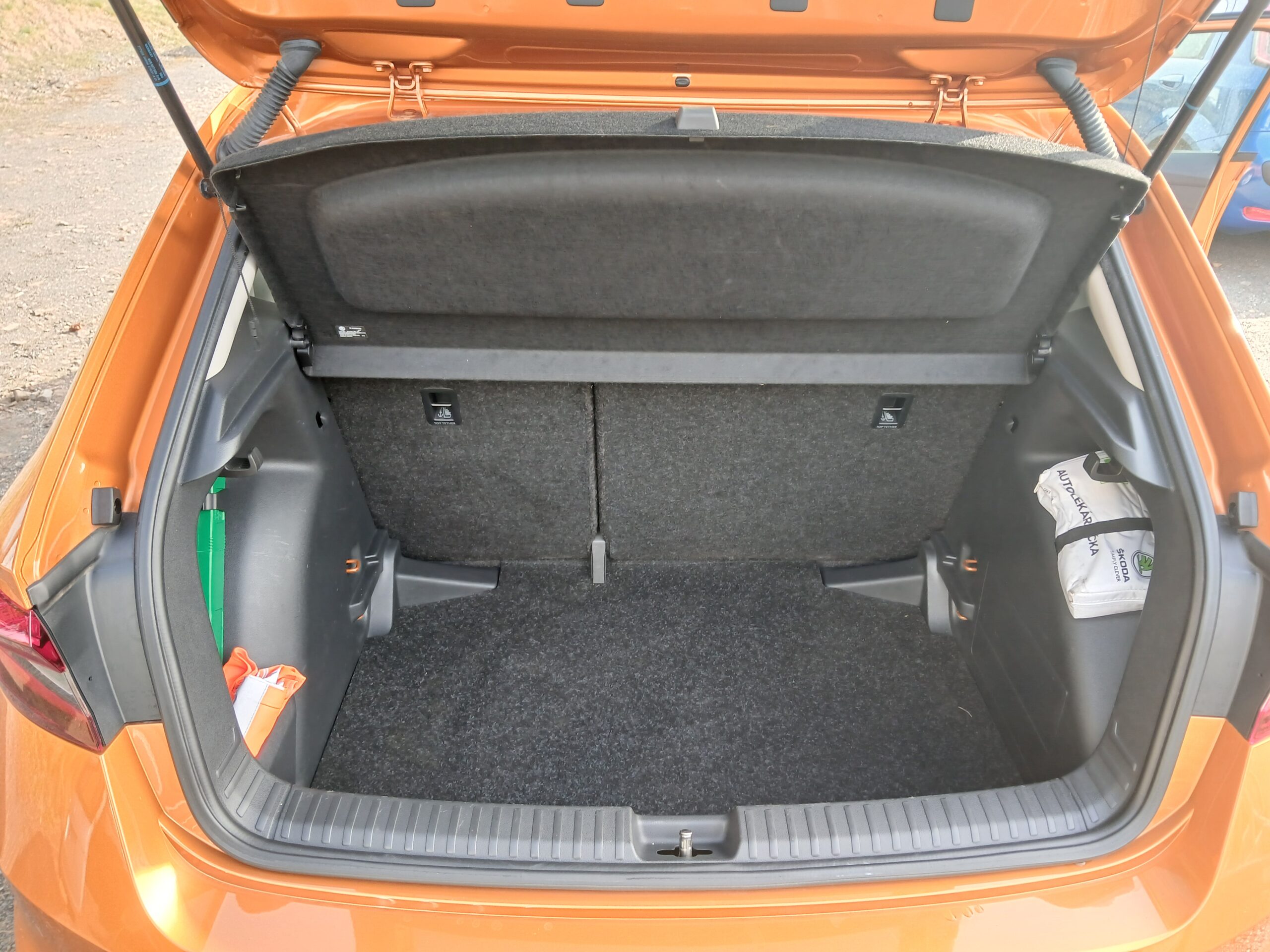 Výbava: originál rádio, 2 x USB, Smart Link, hlasové ovládání, LED světla, couvací kamera, rozpoznání únavy, Assist. vyparkování, Lane Assist, Front Assist, Side Assist, Phone, Start Stop, centrál dálkový, imobilizér, el. okna, el. zrcátka, el. sklopná zrcátka, vyhřívaná zrcátka, tónovaná skla, mlhovky, zadní stěrač, aut. klimatizace, dělená zadní sedadla, vyhřívaná sedadla, výškově nastavitelné sedadla, nastavitelný volant, kožený volant, multifunkční volant, 6 x airbag, deaktivace airbagu spolujezdce, palubní počítač, indikátor parkování, venkovní teploměr, otáčkoměr, alu kola „15“ – „16“ ABS, ESP, posilovač řízení, manuální převodovka, 6ti rychlostní, startování tlačítkem, senzor světel, tempomat. Nárazníky v barvě vozu.